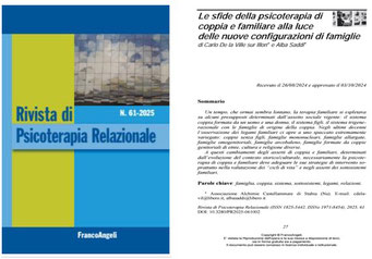 In questo articolo, pubblicato sulla Rivista di Psicoterapia Relazionale, Carlo de la Ville sur Illon e Alba Saddi, psicoterapeuti dell’Associazione Alchimie, esaminano il tema del come la psicoterapia debba continuamente adeguarsi ai nuovi assetti di coppia e familiari che si vanno diffondendo. Nell’attuale contesto storico e culturale si delinea un universo oltremodo variegato di tipologie di coppie e di famiglie che il terapeuta deve affrontare aprendosi a nuovi schemi, modelli e equilibri.